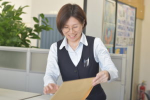 現在は、日々の売上げや請求・入金処理など営業所の売掛管理をメインで担当しています。お金を管理する仕事で、多少のミスも許されないので、常に緊張感があります。また、工場引取のお客様の対応や出荷手配の補助など工場業務にも少しずつ携わっています。